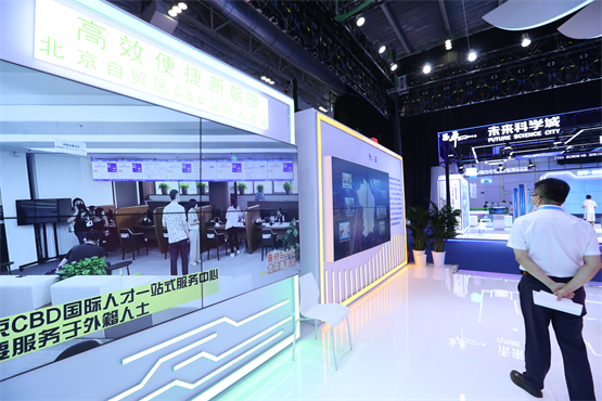 在朝阳展区中,有关人才服务的“高效便捷新朝阳”板块受到了众多创新创业人才的关注。据了解,近年来,围绕人才集聚、交流融合、发展培育、综合服务,朝阳区构建了人才“引用育留”全链条服务体系,并在自贸区内创新打造“CBD国际人才港”,为国际人才提供工作生活便利。和CBD国际人才港同步启用的“北京CBD国际人才一站式服务中心”,作为朝阳区国际人才一站式服务平台首批8个线下站点之一,成为北京自贸区首个国际人才一站式服务平台,也是目前朝阳区打造的功能最全、业务最多的一站式综合服务站点,实现了外国人工作许可和居留许可一门受理。