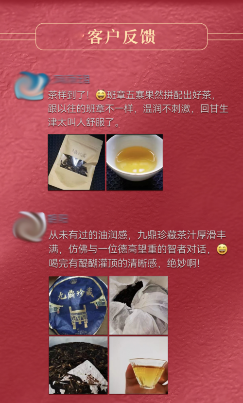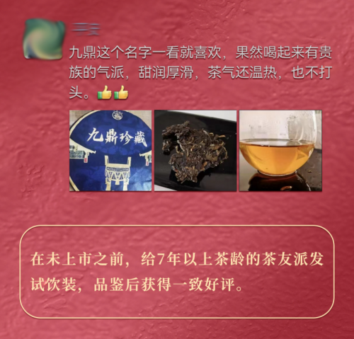 在未上市之前,给7年以上茶龄的茶友派发试饮装,品鉴后获得一致好评。(随机挑选了4位茶友的评论)