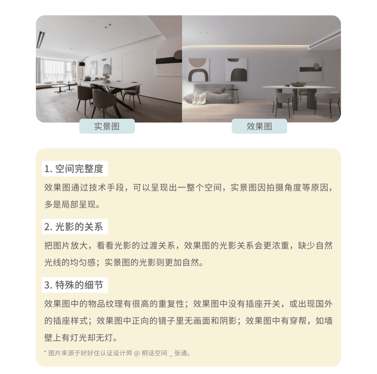 实景作品图是判断“装修合伙人”能力的重要依据,毕竟我们要的不是炫酷的设计方案,而是能把设计还原落地的家。实景图不仅考验了合伙人的设计能力,还有他背后团队的落地能力。我们从以下3个方面,教你有效辨别出实景图: