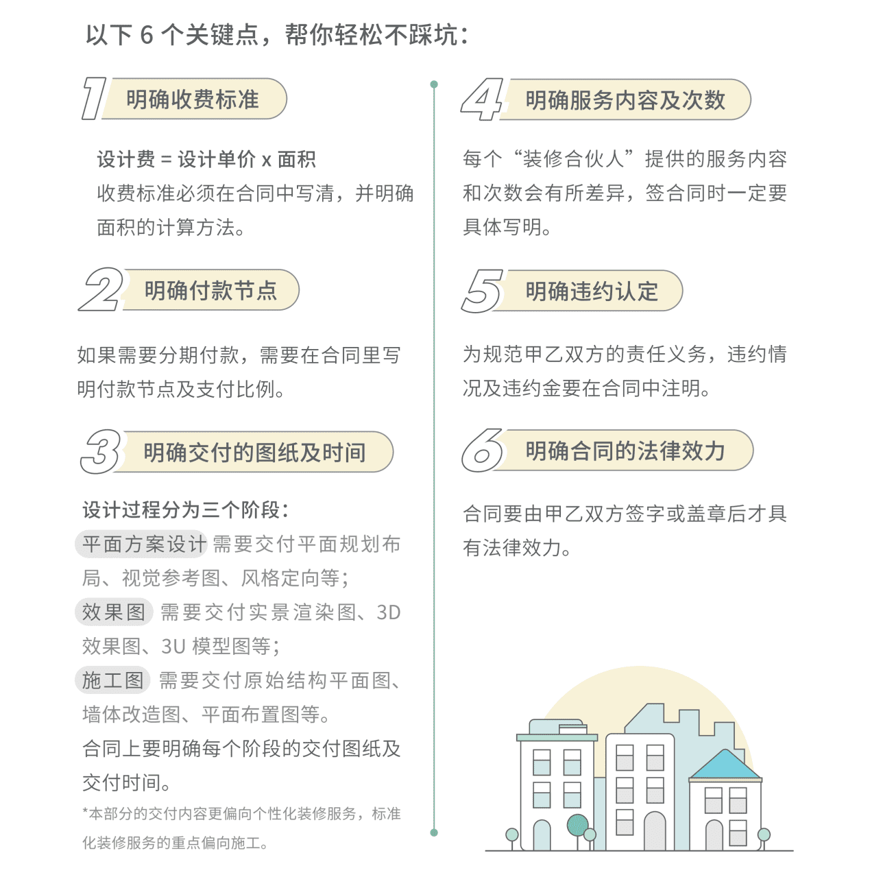 明确了该找哪类装修服务之后,就要正式开始行动,寻找自己的“装修合伙人”了。这也是各种装修避坑的核心——怎样才找到靠谱的设计师或装修公司?在《指南》里,好好住帮你总结了五大远离装修陷阱的必备技能: