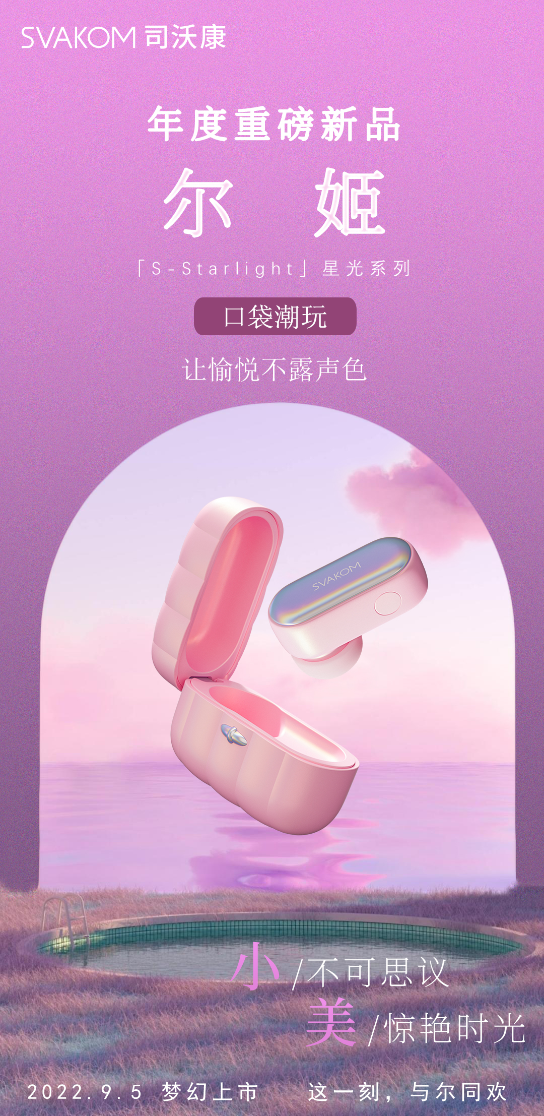 在考虑情趣用品本身所带来的沉浸式愉悦外,SVAKOM司沃康在”『尔姬』“大胆创新,极具情趣巧思,融入不少美学色彩和场景代入体验视角去构思研发,最直观的表现莫过于外形上高颜、隐蔽、便携,真正的做到了什么是”让愉悦不露声色“。