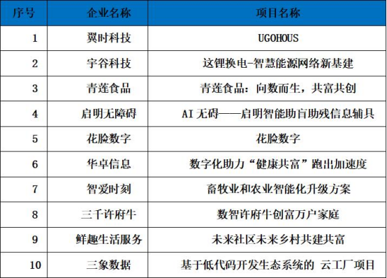 经过复赛评审,最终十个项目团队成功入围“数字共富”专题赛决赛,专题赛决赛设置了特等奖1名、一等奖1名、二等奖3名、三等奖5名四大奖项,入围决赛项目将在世界互联网大会期间进行最终的角逐。除此之外本次大赛还额外设置最具创新奖1名、最具投资价值奖1名、最受关注度奖1名,期待入围决赛项目,将在决赛路演上有更好发挥,为数字共富注入澎湃的力量。