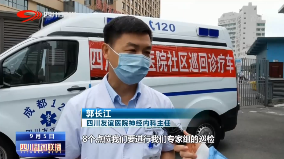 四川友谊医院神经内科主任 郭长江:今天要送6个点位去送药,有8个点位我们要进行我们专家组的巡检。