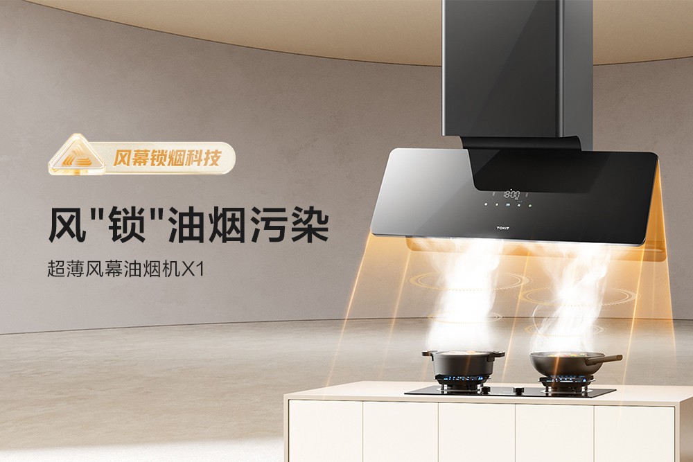 选不对油烟机,油烟很难被除净。为此,TOKIT厨几历时5年专为女性用户研发设计了超薄风幕油烟机X1 ,在业内首创了风幕锁烟科技,可以有效吸除油烟,减少油烟危害。