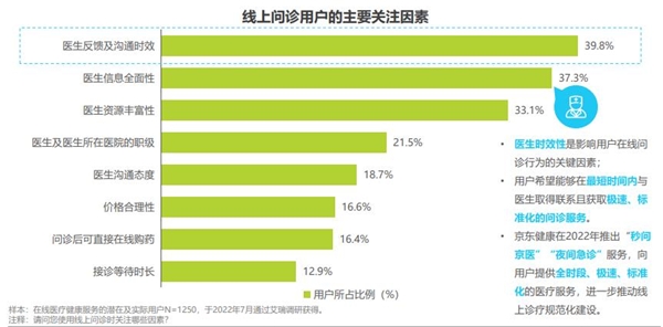 以夜间就医场景为例。《白皮书》显示,医生的沟通效率、专业能力、资源丰富度等是用户最关注的方面。用户更希望能够在填写相关信息后,由系统智能匹配科室,在最短时间内与医生取得联系且获取规范化问诊流程、专业化治疗方案、个性化生活建议以及定制化复诊随访等在内的极速、标准化的问诊服务。但与上述需求矛盾的是,一直以来,夜间不方便线下就医、线上问诊平台的夜间医生少,在线状态不稳定等问题,困扰用户夜间就医。