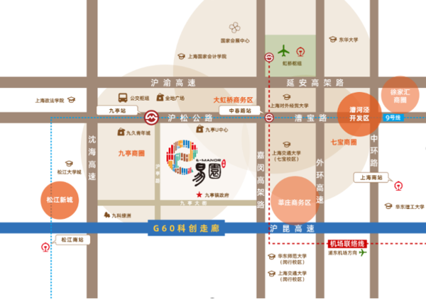 云亭德必易园地处松江东北片区地区中心——九亭镇核心区域,是松江与主城区链接的门户,南接松江新城片区,北临虹桥商务区,向东北7公里即为漕河泾国家新兴技术开发区。同时,园区处G60科创走廊轴线旁,G60科创走廊集聚松江产业发展主要空间和创新要素资源,向东承接中心城区,向西对接嘉兴、杭州,构建松江“一廊九区”的产业空间布局结构。