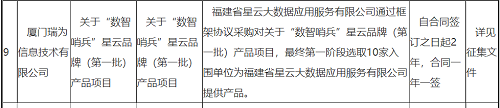 8月11日,中国政府采购网/中国政府购买服务信息平台上发布中标公告,《福建省星云大数据应用服务有限公司关于“数智哨兵”星云品牌(第一批)产品项目框架协议采购项目入围公告》,瑞为技术最终入围,为福建省星云大数据应用服务有限公司提供“数智哨兵”防疫产品及服务。