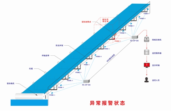 ▪实时在线监测——系统监控平台端将各监控节点状态标注于总装概貌图上,一旦某处发现托辊异常则会及时告警后台监控中心,并以不同颜色指示区别故障等级。无需人工巡查,有无故障一目了然!
