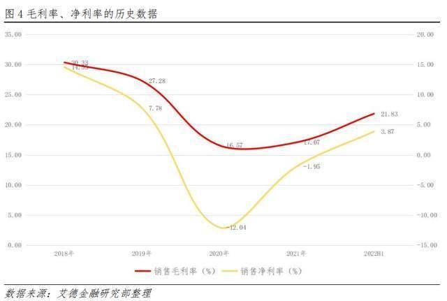 毛利率、净利润率稳步回升。 毛利率由2021H1的15.9%上升5.9个百分点至2022H1的21.83%;净利润由2021H1的-2.67%上升6.54个百分点至2022H1的3.87%。