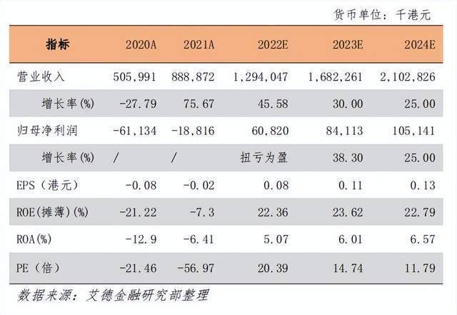 受COVID-19疫情的影响,2020年线下业务急剧下滑,但公司转向大力拓展线上销售,电商业务乘风起势,“线上线下双轮驱动”的销售策略初显成效。2021年以及2022H1,电商业务持续发力,带动营收大幅增长。2022H1公司也分销业务开始回暖,整体盈利能力大幅改善,毛利率、净利率回升,净利润扭亏为盈。综合多个变量因素来看,公司的业绩有望维持升势,预计2022/2023/2024的营收分别为12.94亿/16.82亿/21.03亿港元,归母净利润分别为0.61亿/0.84亿/1.05亿港元,给予“买入”评级,目标价2港元,若以2022年业绩预测值计算,对应的PS为1.24倍,PE为26.23倍。