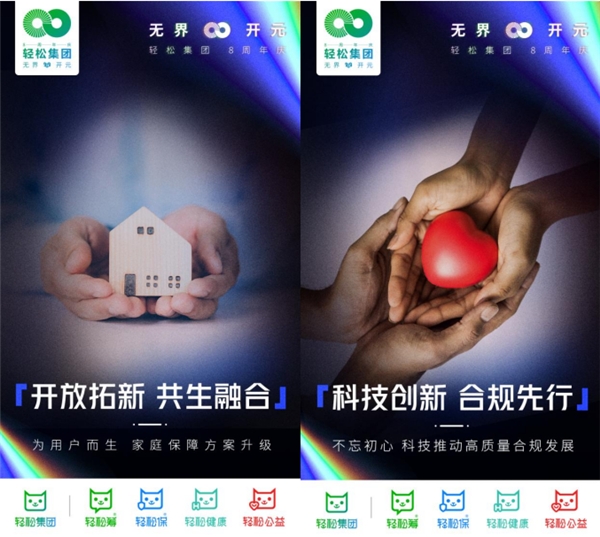 过去8年,轻松集团交出了一份互联网企业在大健康赛道上的创新和探索实践的优异答卷,下一个8年,轻松集团将进行4大战略升级,将在大健康赛道的探索推上一个新台阶,正如“无界开元”的主题诠释的一样:通过无界合作,将健康保障体系持续升级;与行业同行,科技创新赋能持续升级;只为用户而生,在家庭保障方案上持续升级;不忘初心,用科技推动高质量合规发展。