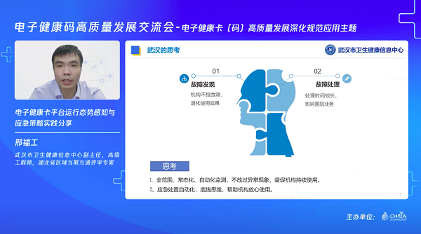 针对规范性建设,武汉市卫生健康信息中心副主任,高级工程师,湖北省区域互联互通评审专家邢福工提出,第一,要建立底线意识;第二,要打牢安全的基石。