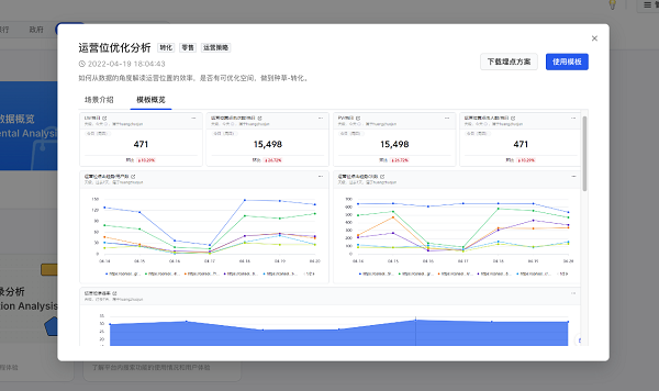 DataFinder的「场景模板」功能解决了这项痛点。它全面总结了字节成立以来的数据分析方法,并融合火山引擎服务数百家外部客户的经验,将零售业具有通用价值的数据分析体系进行了抽象,预置为产品的底层数据模板,使得零售企业可以结合个性化设置直接调用。