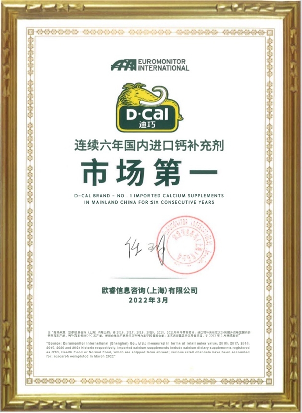 迪巧拥有一个完整的包含产品开发专家、质量控制分析员、化学专家在内的实力强劲的研发团队。他们始终秉持专业的研发理念,围绕不同年龄段消费人群因人而异的钙营养需求,定制专属钙剂。截至目前,迪巧已实现孕、婴、童、成人、老年等钙剂细分市场的全面覆盖。正是由于这份追求领先的研发实力,迪巧的市场份额才能不断扩大,并从众多钙产品中脱颖而出,获得由欧睿国际颁发的连续六年进口钙补充剂市场第一认证。