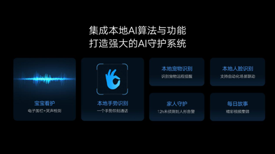 在保障用户基本的看护需求的同时,AI增强版也考量了更多智能功能和人文关怀的体验打造,适用宝爸宝妈、独居女性、家有萌宠等不同人群。