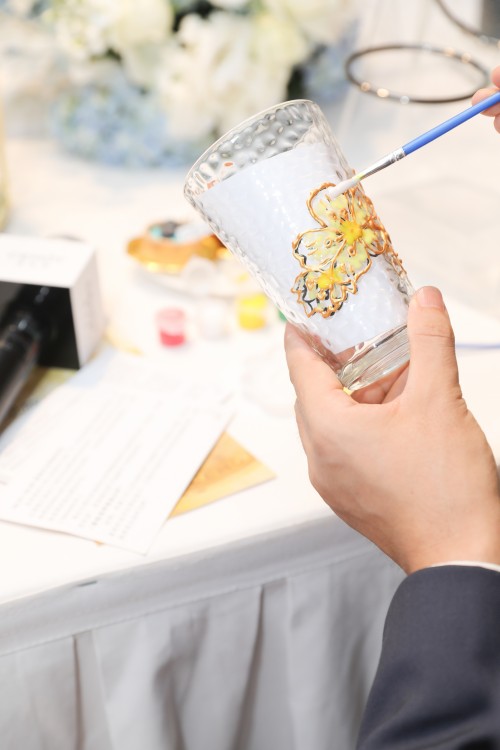 图注:艺术绘画也一直是CEMÔY澳诗茉产品赋能的重要组成部分,图为画展期间所举行的沙龙活动上,爱心用户正以琉璃彩绘的形式绘制白池花精华油的白池花花卉。