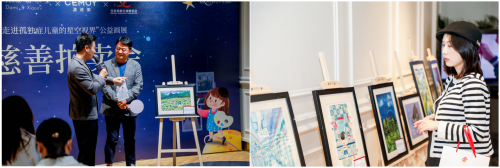 本次公益画展设有很多小单元,包含现场观展、云上画廊、慈善拍卖会等,每个单元的内容都有孤独症儿童及家庭、社会爱心人士的参与。主办方CEMOY澳诗茉希望用这样艺术疗愈的方式,给孤独症群体一个被「看见」的空间,让他们发现自我价值,用艺术与周围世界对话。