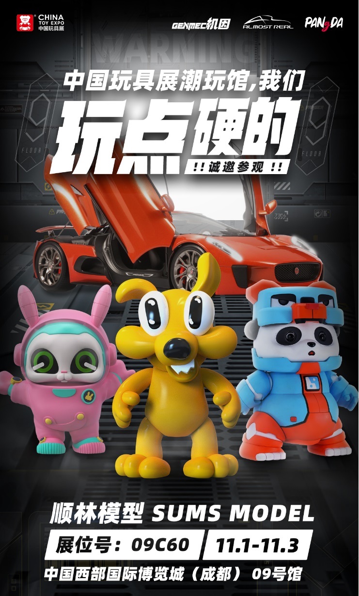 11月1日至3日,第20届中国玩具展在成都举办,顺林模型除携旗下Almost Real收藏车模、胖哒合金潮玩等经典作品登场外,更还有潮流和生活方式品牌“机因GENMEC”及萌贱狗、机械兔Baby Popo等一系列新锐潮流IP首次亮相。