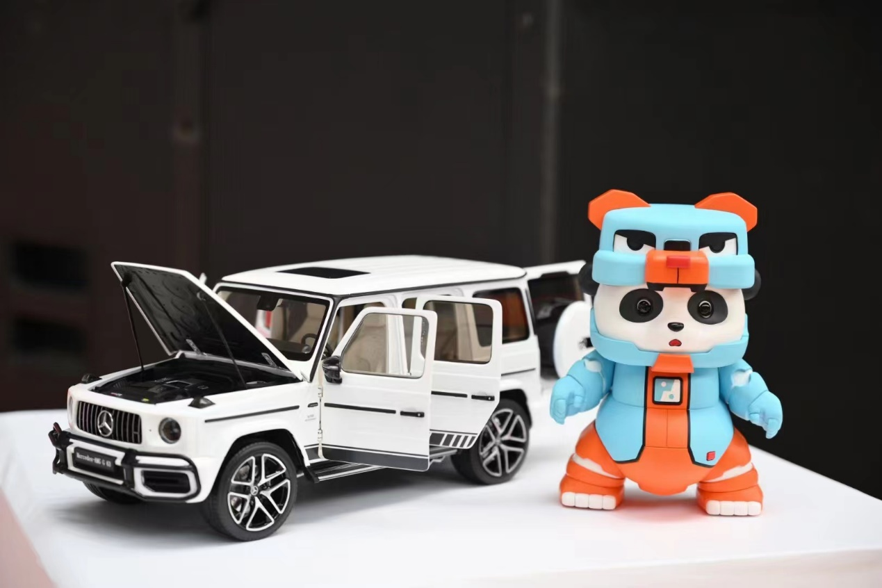 胖哒合金潮玩以身穿百变纳米机甲熊猫新国潮概念,150mm尺寸的合金胖哒单体重达850g,让消费者体验到与市场主流塑胶材质不同的触感,加上机械齿轮可转动等动作概念,全球限量发行,既是潮玩,又是艺术作品,更具收藏价值。