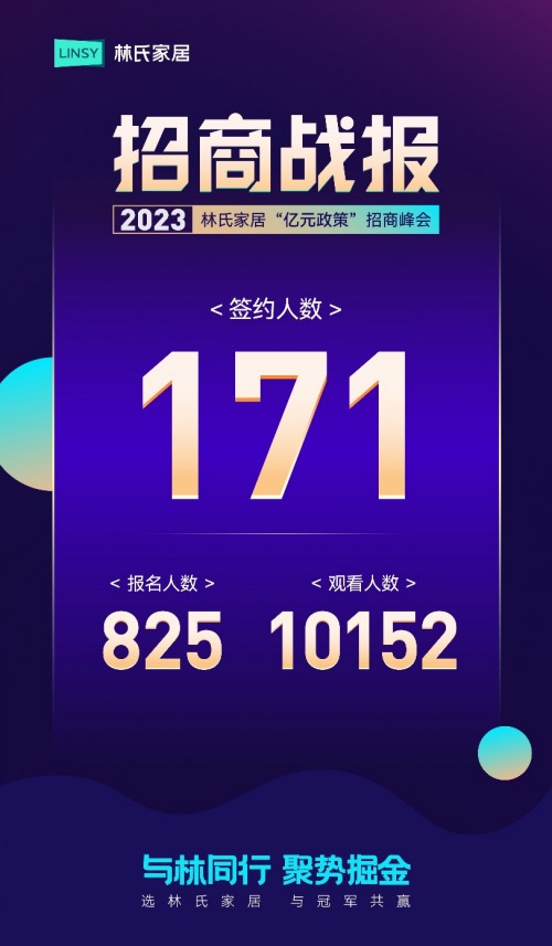 强赋能的招商政策,获得不少家具经销行业沉浸多年的“老兵”青睐。据介绍,本次“亿元政策”招商峰会最终创下825名报名人数,签约人数171人的佳绩。