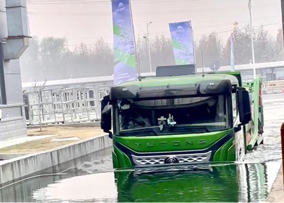 能够完成涉水挑战,这得益于宇通三电系统的防护等级已经做到行业领先,达到IP68+IP6K9K标准,也就是说电池、电机、电控系统不仅可以在1米水深处泡水24小时,还可以接受85℃高温水在10MPa的高压下冲洗30秒后正常使用,能够轻松应对涉水挑战。