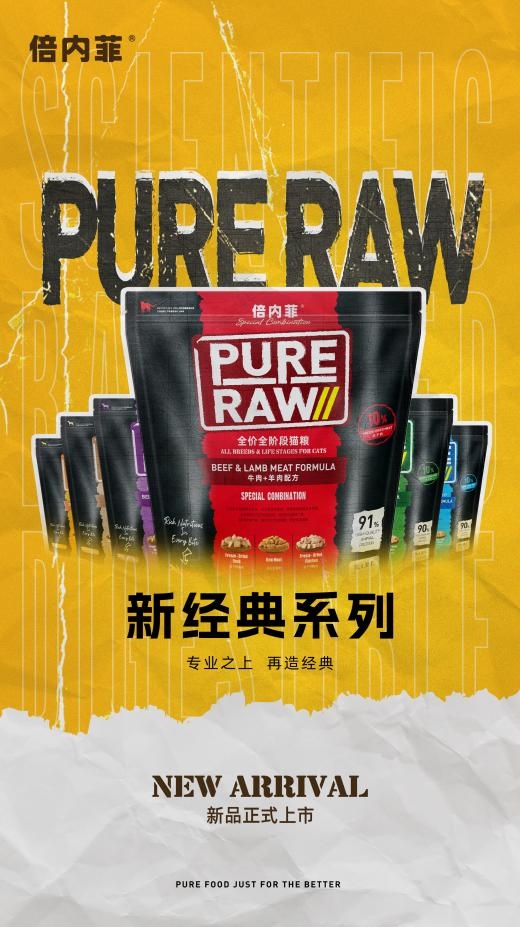 新经典系列作为倍内菲的新作,在专业创新下凝聚多款产品的经验与技术,提出全新的营养关爱理念,不止步于吃得好这一理念,而是从采食、消化、吸收、代谢、利用到排泄的每一环节都给予深度研究。在宠粮组成上,新经典系列继续延续倍内菲主粮+冻干的特色营养结构,其中仅冻干就添加冻干生骨肉、冻干鸡胸肉、冻干鸭胸肉三种,并且添加比列一如既往的采用高性价比的策略。除此之外,新经典系列还关注免疫体系和肠道养护系统的构建,精选消化率高的优质蛋白,选择益生菌+益生元的结构,这种从根本上出发考虑宠物营养的理念,频频获得专家、学者、检测者的称赞,得到了消费者的广泛认可。