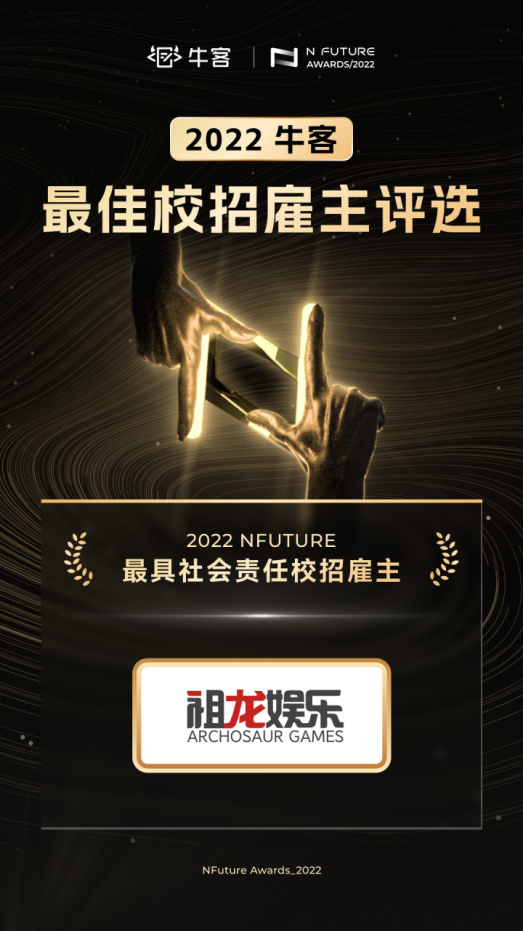 国内知名游戏厂商祖龙娱乐凭借多年来对于企业社会责任的良好履行,并在抗洪救灾、扶贫助学、资助病患等多个领域做出了卓越贡献,从众多参评企业中脱颖而出。近年来祖龙娱乐积极开展校企合作,以实际行动推动青年人才在职场中全面发展,守护青年人才心中的善良与热爱,荣获“2022 NFuture 最具社会责任校招雇主奖”,是大学生朋友们以及专家评审团对于祖龙娱乐积极履行企业社会责任的认可。