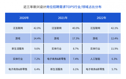 实体行业对新兴设计岗位的招聘需求不断增加。《白皮书》指出,2022年有近12%的人才需求来自实体行业。同时,百人以下规模的企业发布的岗位需求占比呈现逐年增加的态势。