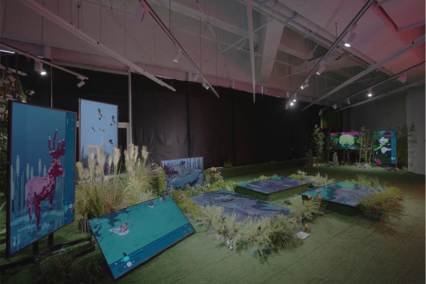 保护濒危动物公益项目《体素方舟》数字艺术展中,由多位艺术从业者联动打造了数字艺术沉浸式板块。在二楼展区,参展者可以欣赏众多动态与交互作品、观看数字藏品公益发售活动和干货满满的“长江十年禁捕计划”成果分享会,更有趣味的主题派对,以及数字藏品作品的惊喜亮相和发售。