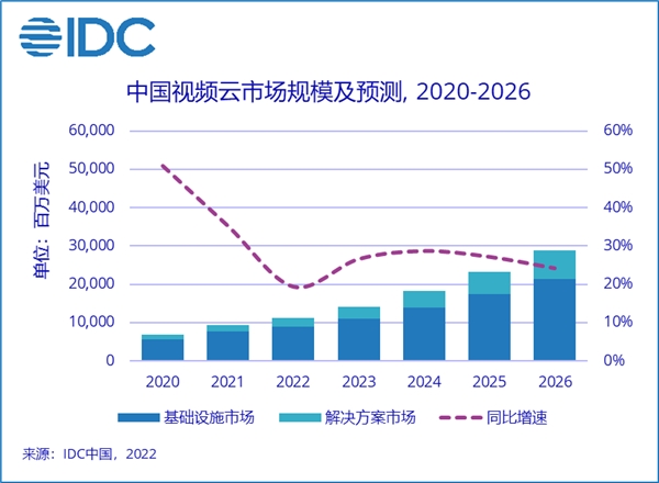 报告显示,2022上半年中国视频云市场规模达到50.5亿美元,其中视频云解决方案市场规模达10.5亿美元,同比增长达到28.7%。