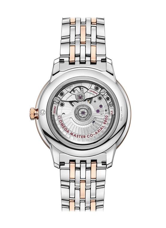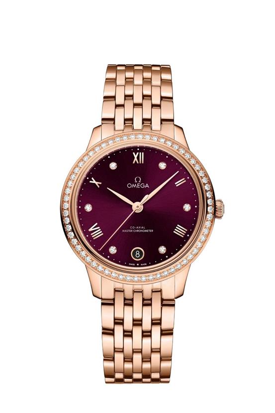勃艮第红色的PVD表盘呈现太阳射线的打磨效果,使这款腕表立马有了热红酒一般的醉人气质,也衬托得那圈精致的罗马数字刻度愈发贵气起来。在其表圈之上的钻石璀璨醒目,Sedna 18K金的表壳、表链与蝴蝶表扣浑然一体、温暖奢华,也使它非常适合作为结婚纪念等更重要场合时赠送的礼物。这两款碟飞腕表同样搭载欧米茄8800至臻天文台机芯,其运转之姿,也可透过表背的蓝宝石玻璃一览无余。