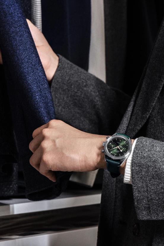 设计层面,灵感致敬1957年首款超霸的它,拥有着沿袭历史传承的外观,绿色表盘搭配镀铑小时刻度和著名的「阔箭」指针,使它整体经典又帅气,覆有白色Super-LumiNova夜光涂层的指针和小秒盘、更为祖母绿一般的表盘增添了许多质感。