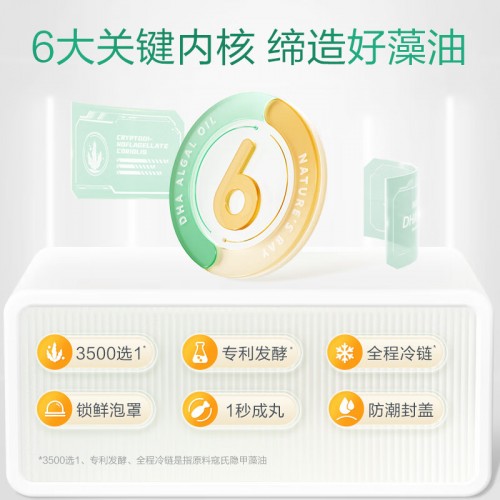 0~3岁是宝宝大脑“拔尖”的黄金期,妈妈们都会抓住黄金期为宝宝大脑“加油”!为更好地满足妈妈们对DHA藻油产品日益增长的高品质需求。天然博士始终坚守“好藻出好油,锁鲜高品质”的理念,更是秉承“六大关键内核”缔造出高品质DHA藻油。