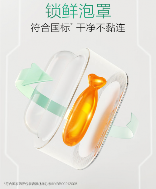 在细节上,天然博士DHA藻油也是做得相当出色的。每粒DHA都有独立锁鲜泡罩和专利防潮封盖包装,这样的包装干净又卫生,不会出现黏连,更好地锁鲜高品质。