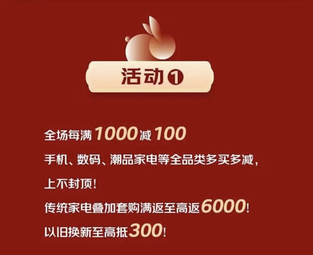 除了精彩的演出,实在的优惠福利也必不可少。活动期间,沈阳京东MALL全场每满1000减100,用实实在在的福利掀起新年焕新潮。店内手机、数码、潮品家电等全品类多买多减,上不封顶!更有传统家电叠加套购满返至高返6000活动,不要太划算!焕新后的旧家电如何处理一直是头等难题,沈阳京东MALL特推出“以旧换新”服务,轻松解决家电换新难题,还有“以旧换新至高抵300”的专属优惠,用实在价格成就新年焕新仪式感。