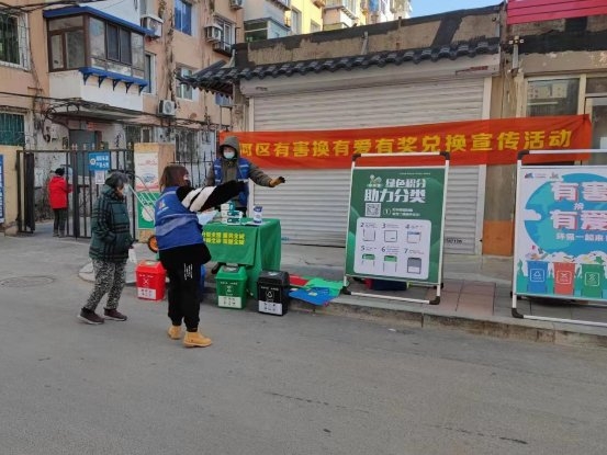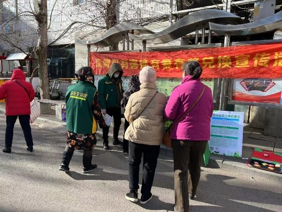 12月7日沈河区分类办组织运营企业在风雨坛街道三八南小区开展“有害换有爱”有害垃圾有奖兑换活动。