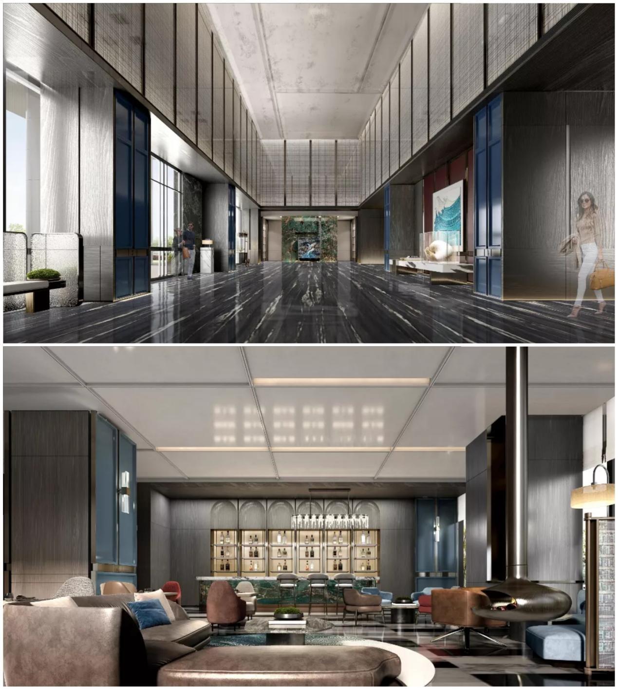 水流盘旋曲折,一轮红日已从海上升起。融入深圳渔港、海湾文化将水流红日“浮光跃金,静影沉璧”的自然之美跃然呈现在大堂吧中;复合空间层次感分明,谈笑间温馨安宁,精致舒适的现代气息已弥散。