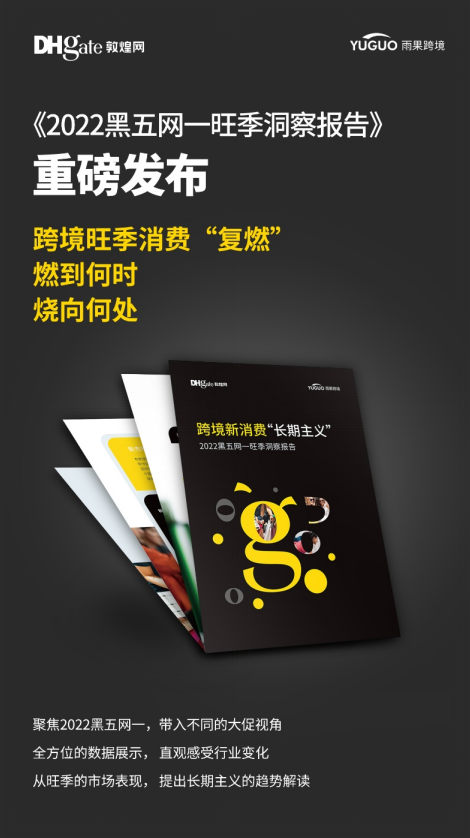 为了帮助跨境企业扫除出海迷雾,雨果网与知名跨境电商出口平台敦煌网联合调研,共同发布了《2022黑五网一旺季洞察报告》,这份报告从第三方观察的角度,俯瞰整场黑五网一的变化趋势,分析每一处细节背后的支撑要素,最终发现了这场大促中“释放能量的奇异点”——跨境新消费的长期主义。通过《2022黑五网一旺季洞察报告》,卖家能够更直观的理解当前与未来一段时间,跨境电商行业的流量走向与消费趋势,掌握适应环境的生存法则。