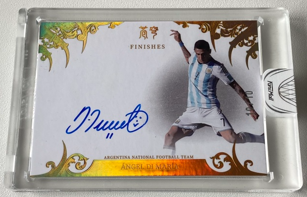 FansMall的阿根廷国家队球星卡为迪马利亚设计的签字卡中,包含了苍穹系列的绝杀签、时刻签、处子球签、射手签,三款PA(包括小书),壹系列的时刻签、两款PA,随着迪马利亚退出国家队,他的国家队球星卡将陆续绝版,势必将在未来一段时间内在市场上引来一番争夺战。