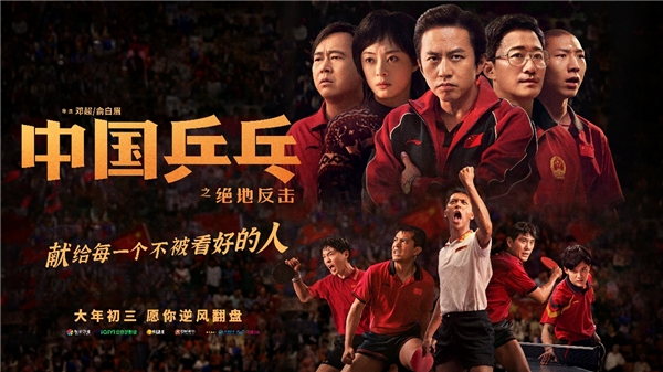 兔年新春到来,由中国移动咪咕联合出品,邓超、俞白眉执导,邓超、孙俪、许魏洲、段博文、蔡宜达、丁冠森、孙浠伦、阿如那等领衔主演的电影《中国乒乓之绝地反击》于大年初三正式上映。电影《中国乒乓之绝地反击》取材于九十年代初国乓男队低谷时期的故事,面对当时瑞典队异军突起,技术打法赶超中国,铁腕少帅临危受命,组建起一支并不被看好的新军,面对质疑,“男乓新五虎”发挥各自优势,在1995年天津世乒赛上打出了漂亮“翻身仗”,重回荣耀巅峰。中国队卧薪尝胆、绝地反击,捧回了阔别6年之久的斯韦思林杯,捍卫了中国乒乓的荣誉。