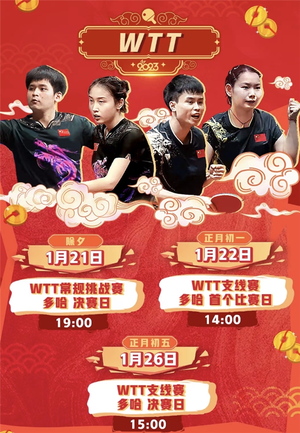 1月22日至26日 WTT支线系列赛多哈站(卡塔尔多哈)