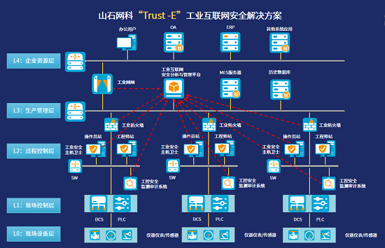 2022年,山石网科重磅推出自主"Trust -E"工业互联网安全解决方案,它是基于实现融合先进安全技术的安全生产可信环境理念,在满足客户等保、关保、行业规范等合规需求下,形成的一套涵盖工业互联网边缘层、控制层、应用层与平台层的整体解决方案。包含工业防火墙、工业网闸、工业安全监测审计系统、工业安全主机卫士系统、工业互联网安全态势分析与管理平台等核心产品与服务, 涵旨在打造工业互联网安全纵深防护体系,为客户的安全生产保驾护航。