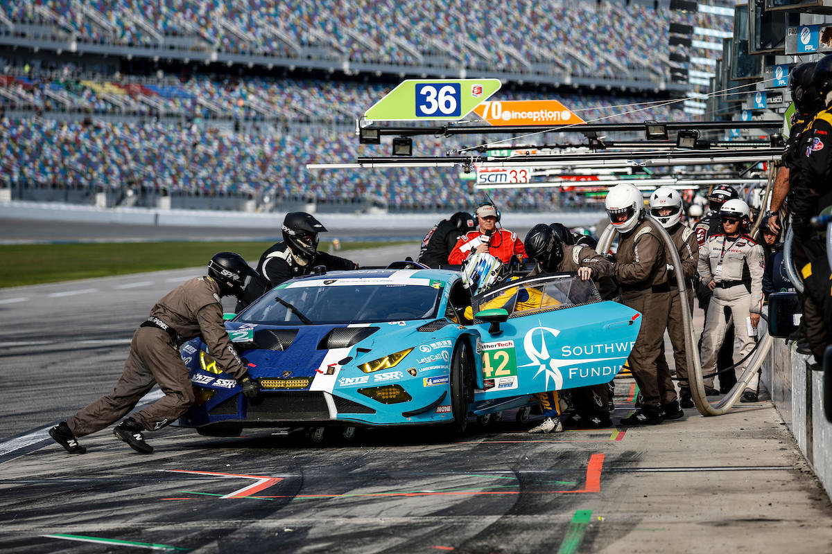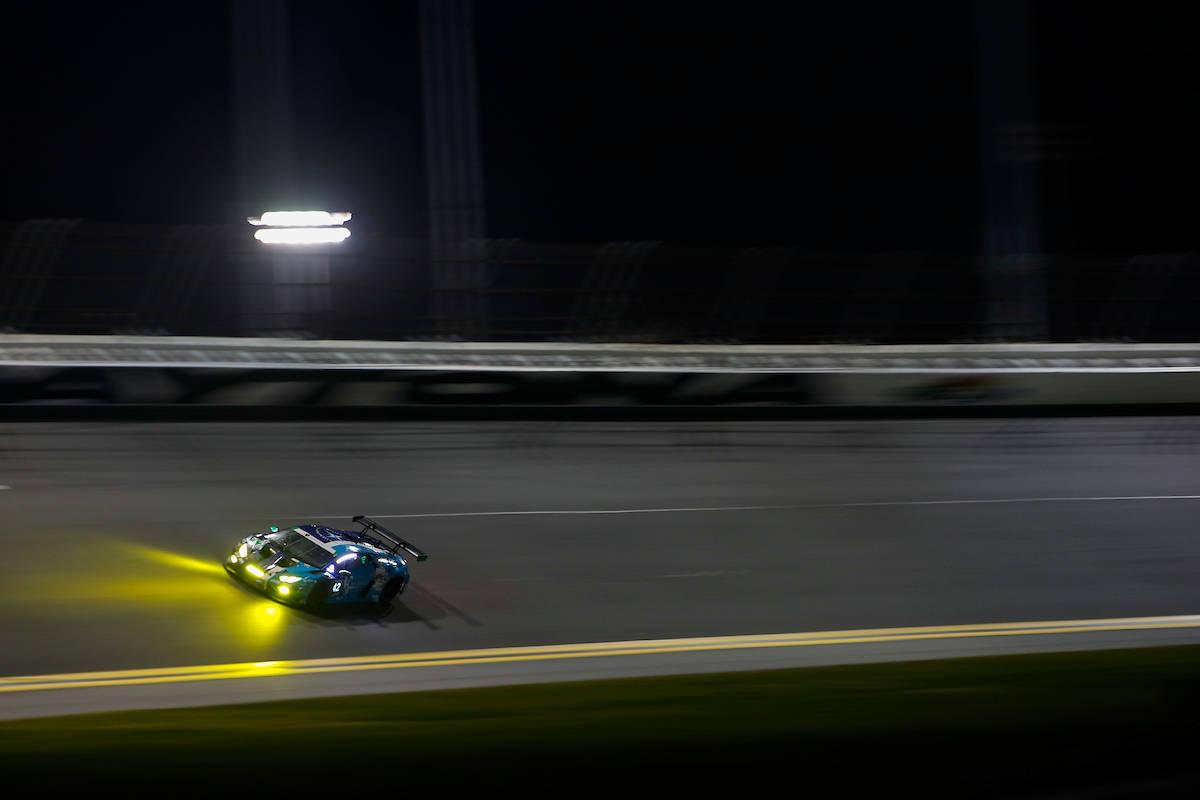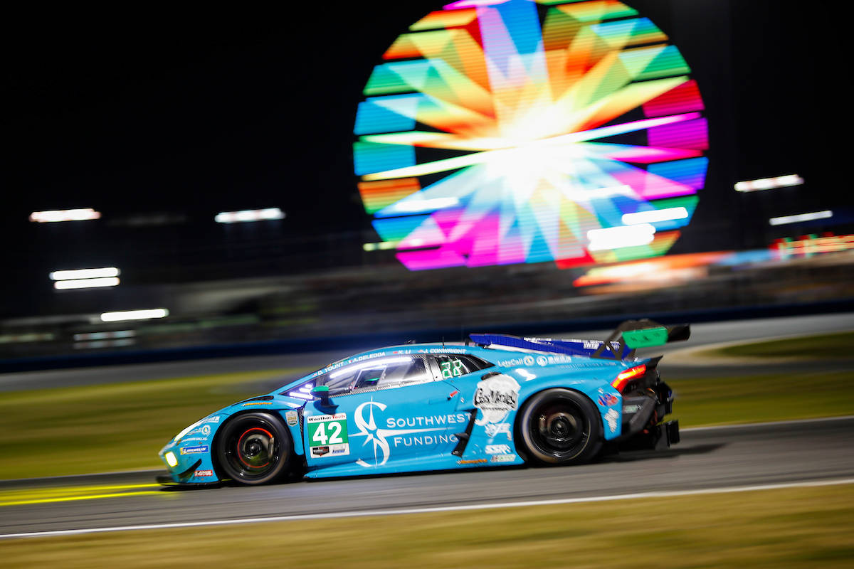 此后的时间中,三位队友康怀特 、梅根尼斯 与德莱达 在夜间赛段不断努力,希望能够追赶损失的时间,但幸运女神没能眷顾整个周末都在辛勤工作的车队,油箱破损使得赛车在场上愈发难以驾驭。在临近比赛第13小时到来时,车队不得不召回42号赛车宣告退赛,也就此提前结束了本届戴通纳24小时耐力赛的征程。