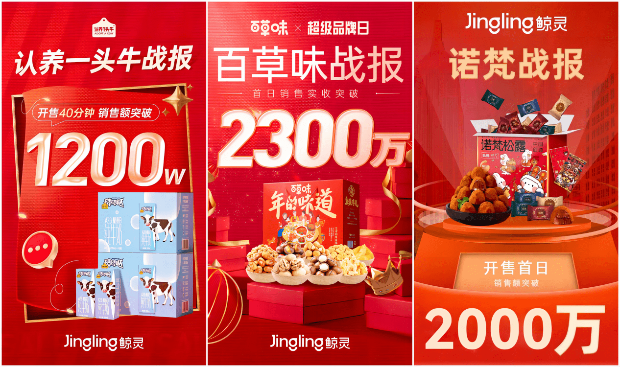 这一模式助力众多品牌方收获靓丽私域战报,如认养一头牛新品A2型牛奶在鲸灵首发,上线40分钟破1200万;在鲸灵超级品牌日活动中,百草味首日销售额达2300万,诺梵首日销售额达2000万,氧心首日销售额突破1500万,芬腾销售额收获1500万……私域的超强爆发力获得了一次又一次的证明,赢得业界高度认可与好评。