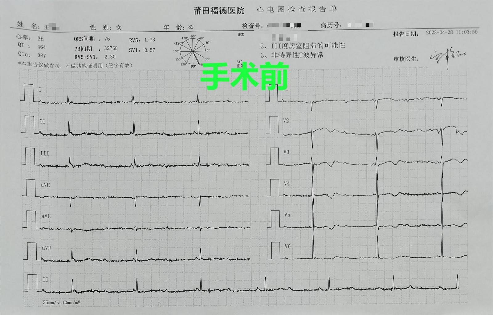 82岁患者,入院前无明显诱因出现反复胸闷,全身乏力不适等症状,休息后症状无改善且并逐渐加重,在家人陪伴下就诊我院急诊中心,诊断为高度房室传导阻滞。