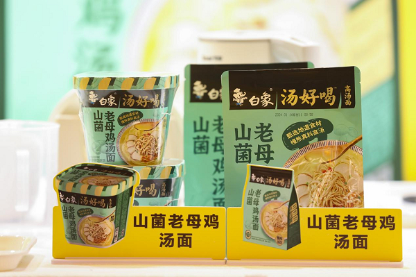 此次糖酒会上,白象携旗下汤好喝产品重磅参展,现场煮起了热腾腾的高汤面,不少客商和参展观众表示循着香味找到白象,“面条很香很爽弹,汤头很鲜,像那种经过文火慢炖的鸡汤。”