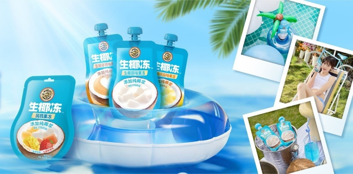 徐福记从30年前就入局果冻市场,推出的第一款果冻就是椰果果冻。今年实现针对“椰”的果冻技术创新的突破,研发出首款生椰冻。