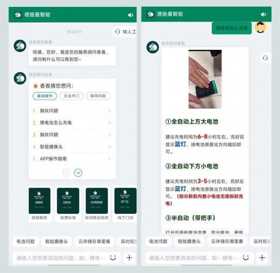 其次,德施曼在线客服方面也部署了AI客服,专门处理简单且标准化的问题。