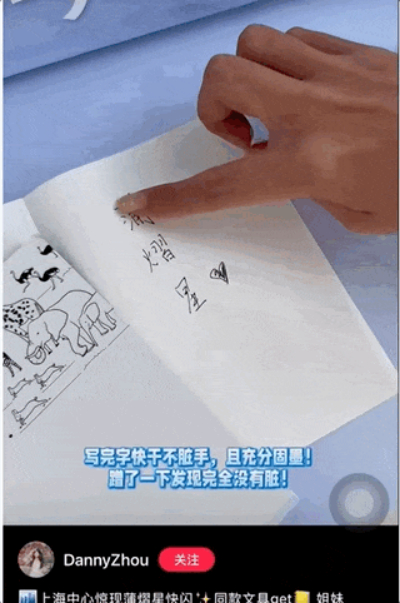 探店博主@DannyZhou在朵云书院偶遇晨光这次快闪活动,从小就用晨光的她,在书写体验后感叹,还得是中国纸更懂中国字,用起来比平时写字都好看。