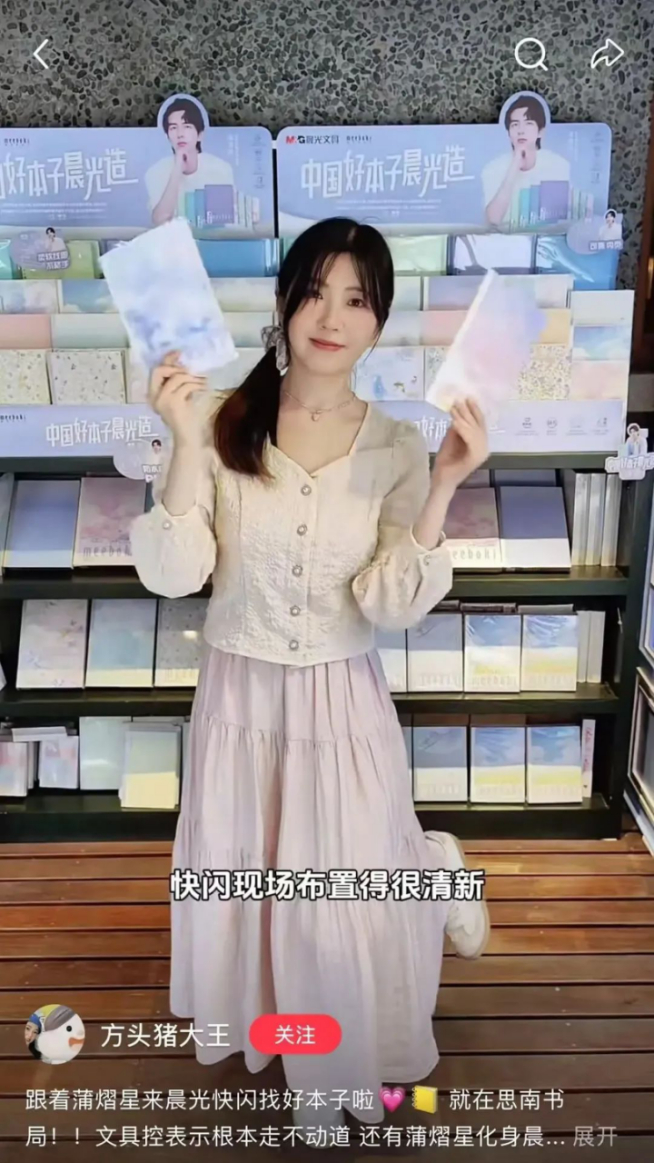 因为懂年轻人喜好,晨光选择年轻人喜欢拍照打卡且具有最美书店之称的书店设立快闪专区,互动氛围十足。
